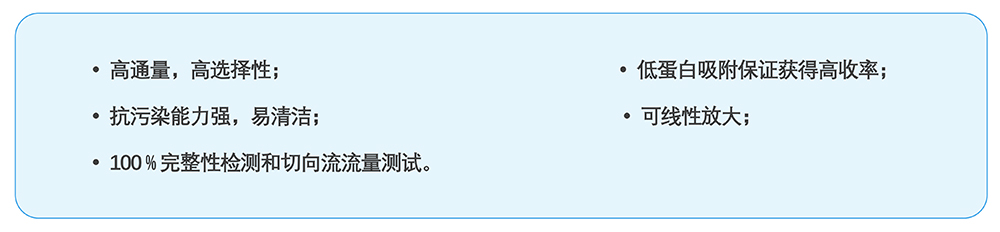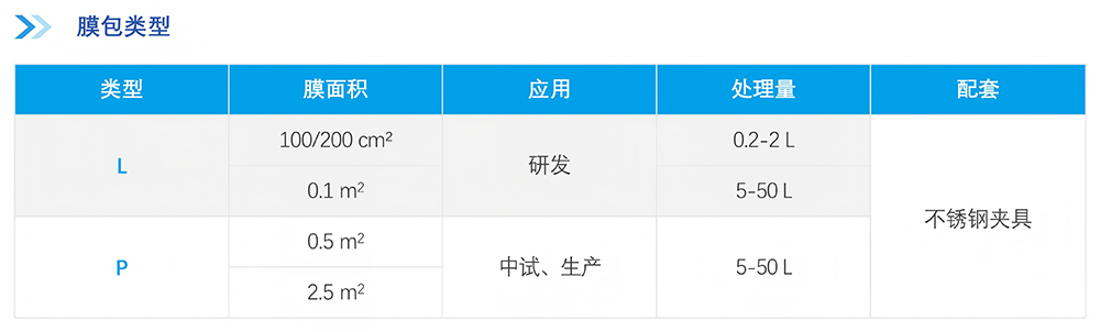 碧水源超濾膜包通過(guò)濾膜多層堆疊方式設(shè)計(jì),濾膜采用PES材質(zhì),具有低特異性蛋白吸附、回收率高、通量高、化學(xué)兼容性好等優(yōu)點(diǎn)。膜包安裝到夾具上,料液被泵入進(jìn)液口,沿膜表面平行流動(dòng),被膜截留的物質(zhì)通過(guò)回流口流出,透過(guò)膜的流體被收集到透過(guò)液流道內(nèi),流出透過(guò)液口。