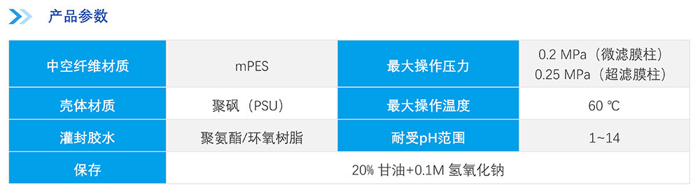中空纖維膜絲采用改性聚醚砜(mPES)制備,抗污染性能強;非對稱梯度孔結構及均一孔徑保證高過濾精度的同時能獲取更高通量,提高產(chǎn)品收率。中空纖維膜柱采用符合醫(yī)療級別的外殼材料,生物相容性優(yōu)異,在滅菌環(huán)境中穩(wěn)定性優(yōu)良;選用的膠黏劑粘接強度高,耐熱性、耐化學性及生物相容性優(yōu)良;同時采用優(yōu)化的注膠工藝,注膠精度高,產(chǎn)品無缺陷。
