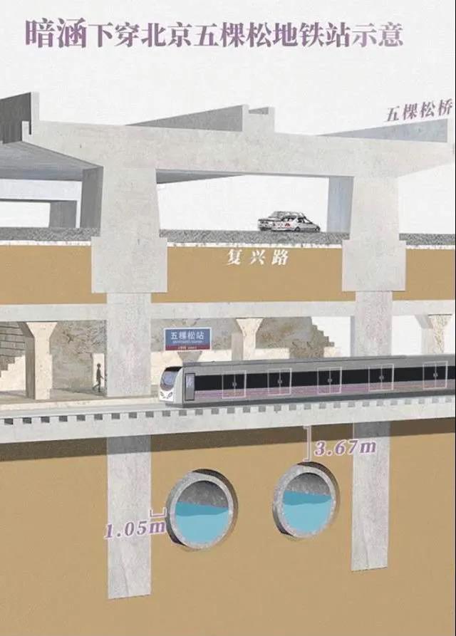 北京,五棵松地鐵站。站臺之上,列車年復(fù)一年穿梭呼嘯,乘客日復(fù)一日來往匆匆;站臺之下,僅3.67米處,兩條內(nèi)徑4米的輸水涵道穿行而過,南水由此奔騰北上。